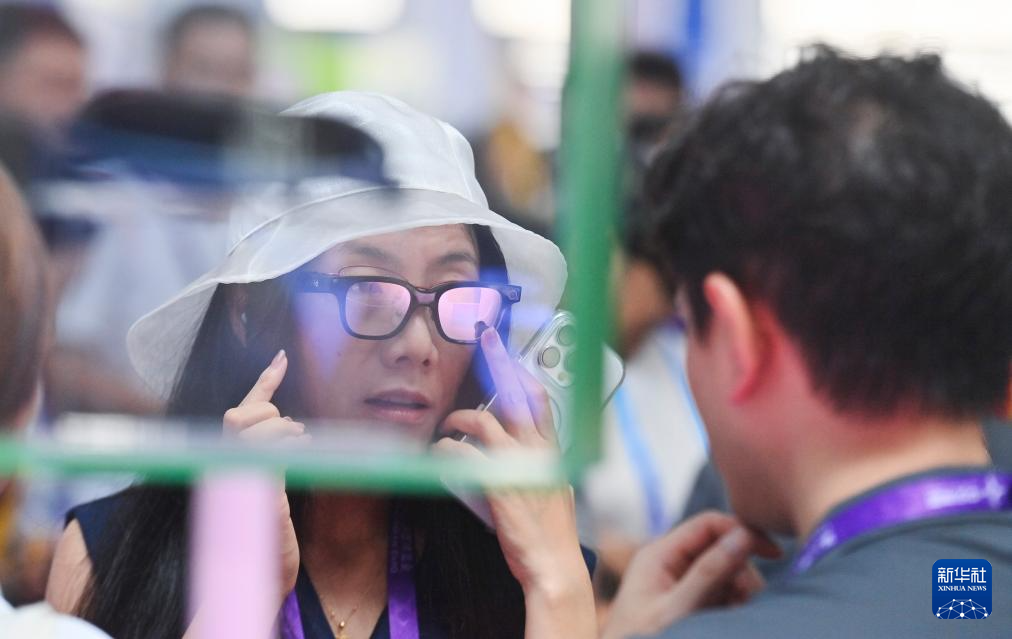 9月18日,在南宁国际会展中心,参观者体验一款AR眼镜。