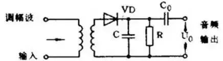 检波电路或检波器的作用是从调幅波中取出低频信号。它的工作过程正好和调幅相反。检波过程也是一个频率变换过程,也要使用非线性元器件。常用的有二极管和三极管。另外为了取出低频有用信号,还必须使用滤波器滤除高频分量,所以检波电路通常包含非线性元器件和滤波器两部分。下面举二极管检波器为例说明它的工作原理。