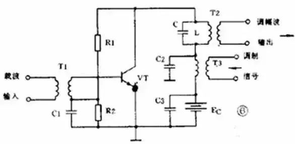 调幅是一个非线性频率变换过程,所以它的关键是必须使用二极管、三极管等非线性器件。根据调制过程在哪个回路里进行可以把三极管调幅电路分成集电极调幅、基极调幅和发射极调幅 3 种。下面举集电极调幅电路为例。