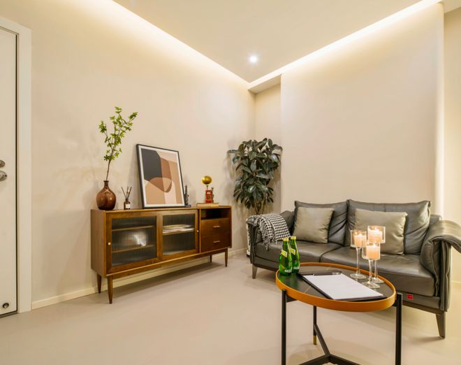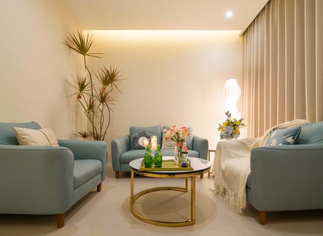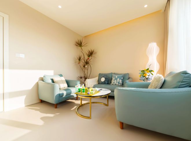 壹点灵的咨询环境也是值得大书特书。壹点灵心理咨询室的空间面积一般为8-12㎡,通过屏风灵活分区,适配个体、伴侣、家庭等多元场景;标配实木地板、三色可调灯光及低饱和度色调(米色、湖蓝等),搭配布艺沙发与原木家具,平衡功能性与温馨感。